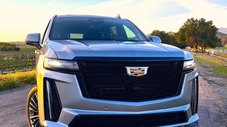 That’s why the Escalade V-Series matters to GM. Why it matters to anyone else is that it’s big, stupid, and stupendous fun. This is warehouse-class SUV that pushes its blunt, smug face and hauls its massive, 6217-pound ass to 60 mph in 4.3 seconds. Its exhaust roars with pride, there’s an audible supercharger whine for menace, and it rolls on thick 275/50R22 Bridgestone Alenza A/S 02 all-season tires around wheels of the appropriately stylish diameter. It is all of the most arrogant things rendered in shiny sheet steel and shiny plastic on shiny wheels. So, of course, the first thing many new Escalade owners do is have theirs covered in a matte wrap.