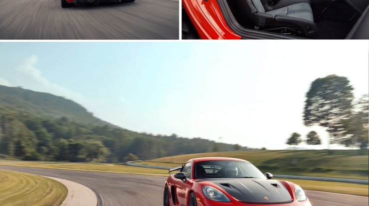 The GT4 RS is, of course, far from slow. That flat-six is straight out of the 911 GT3, complete with the same individual throttle bodies, rigid finger-follower valvetrain, and dry-sump oiling system. It’s rated at 493 hp and 331 lb-ft of torque—less than the GT3 not because of engine tuning, but because the exhaust needed to be lengthened to get the engine to fit. Curb weight is 3227 pounds, lighter than the normal GT4 thanks to a fiberglass reinforced plastic hood and front fenders. There’s also reduced sound deadening, lighter carpeting, a lightweight piece of glass for the rear hatch, and simple pull straps in place of door handles. That revamped final drive means a rocket sprint 2.8 seconds to 60 and, when equipped with the Weissach package, a 7:04 lap time around the Nürburgring Nordschleife.